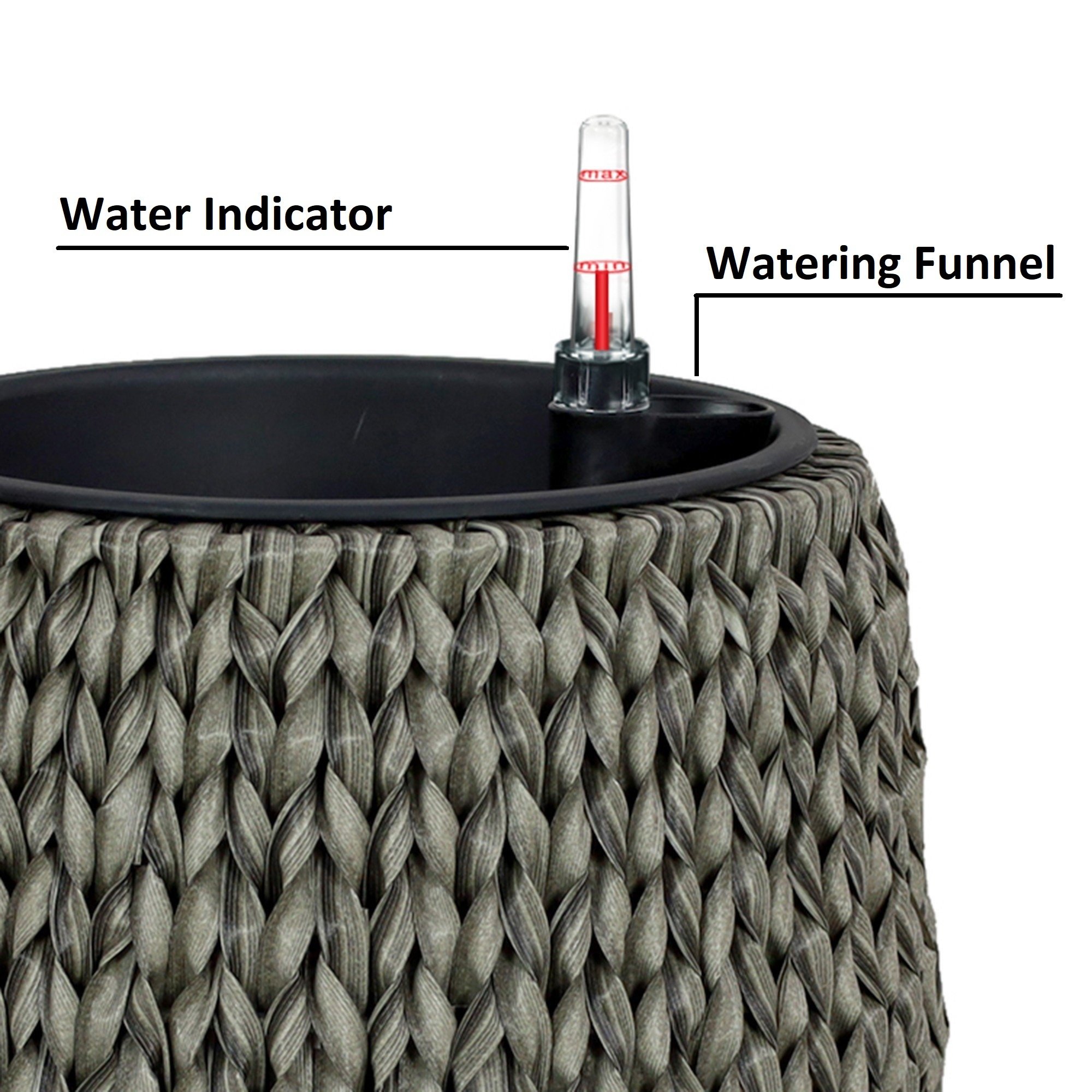 2-Pack Self-watering Wicker Planter - Garden Decoration Pot - Round - GrayIntricately hand-woven, these beautiful wicker pots are the perfect aesthetic accompaniment to nature's most luscious designs. Made from 100% recyclable materials with plastic lining for added protection with our very own highly popular self-watering system, these wicker pots offer more than meets the eye. Whether if it is for plants, flowers, or succulents, these wicker pots and their calming subjects will add a little extra character and tranquil charm to your space.Beautiful Hand Woven Self Watering Wicker Pot & PlantersA timeless design making for the perfect home to nature's eternal beauty, our hand-woven, self-watering wicker planter pots are a sight for sore eyes. With great features to further put your mind at ease.Combining the industry's latest innovations and age-old practices of putting wicker to good use which dates as far back as 1200 BC, the passionate and experienced artisans behind these beautiful planters bring you the best of both worlds.