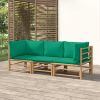 3 Piece Patio Lounge Set with Green Cushions Bamboo
