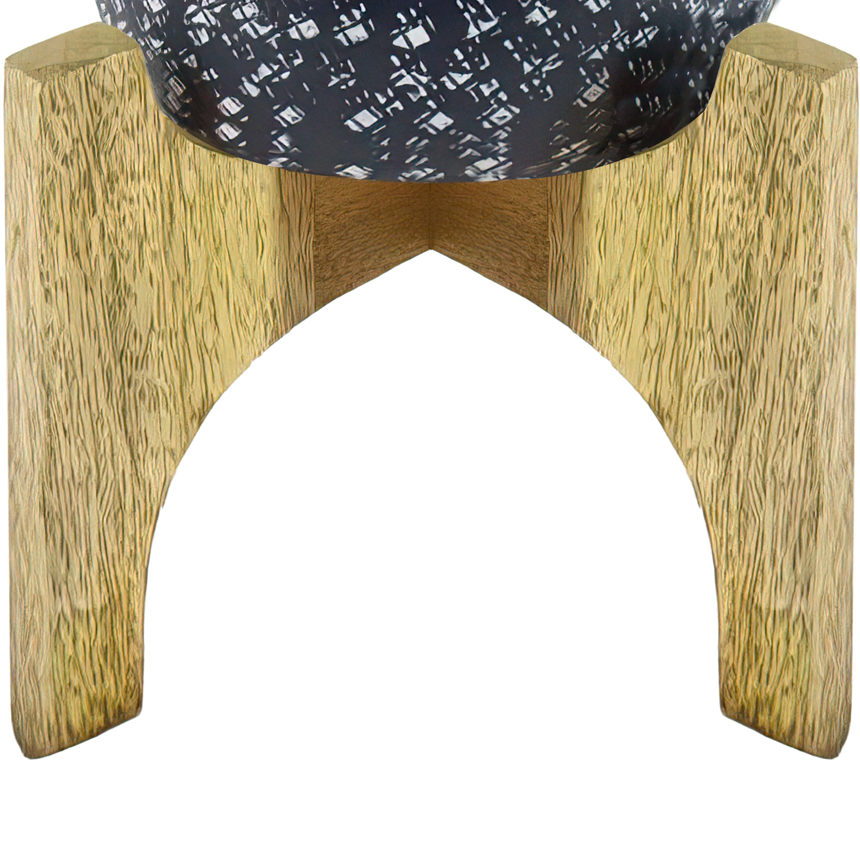 Alex 8 Inch Artisanal Industrial Round Hammered Metal Planter Pot with Wood Arch Stand, Midnight Blue