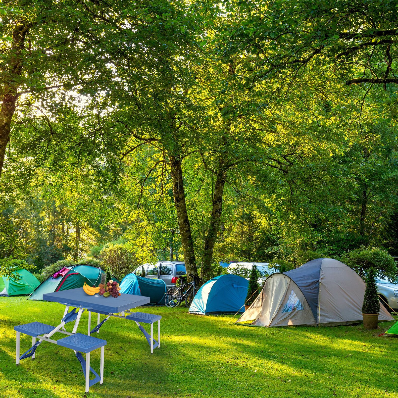 Introductions:If you like picnic or want to have a comfortable environment in the trip, this One-piece Portable Folding Table with Stool will be your best choice. This is a portable outdoor camping folding table. It is great for camping or day trips in the forests or garden set use. Moreover, it is foldable and lightweight, easy to transport. So, the table can be carried easily, just like a suitcase. It is a very good product, what are you waiting for?Features:1. Ideal for camping, picnics or other outdoor activities2. Convenient to carry when you go out3. With modern design and is foldable for easy storage4. One-piece style, consisting of both table and stool5. Contoured for comfort and designed for durabilitySpecifications:1. Material: Plastic PS Thickened2. Color: Blue3. Expanded Product Dimensions: (53.35 x 32.68 x 25.79)" / (135.5 x 83 x 65.5)cm (L x W x H)4. Packing Dimensions: (35.43 x 17.13 x 4.53)" / (90 x 43.5 x 11.5)cm (L x W x H)5. Product Net Weight: 16.18lb / 7.34kg6. Package Gross Weight: 19.40lb / 8.8kg7. Folded product Dimensions: (33.46 x 14.96 x 3.94)" / (85 x 38 x 10)cm (L x W x H)8. Chair Surface Dimensions: (11.81 x 10.63 x 1.38)" / (30 x 27 x 3.5)cm (L x W x H)9. Desktop Dimensions: (33.46 x 25.59 x 1.97)" / (85 x 65 x 5)cm (L x W x H)10. Umbrella Hole Diameter: 1.02" / 2.6cmPackage Includes:1 x Foldable Table (without Sun Umbrella)1 x Manual